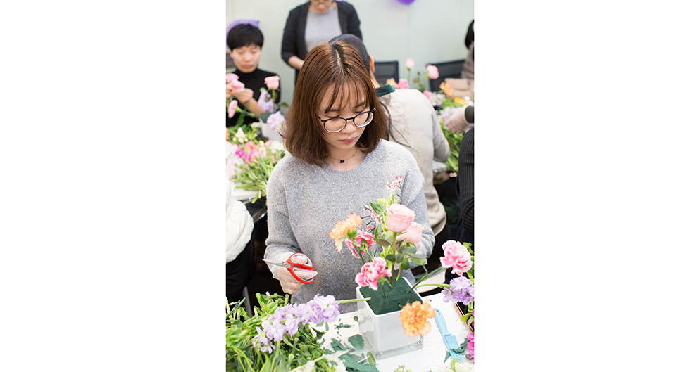 SED總部清一色美女齊上鏡,在充滿芳香的花藝課堂,聆聽老師的授課,仔細研究后,一個個富有個人特色盆景呈現,真所謂“人比花嬌”。插花課堂結束,精彩還在繼續,一行人便前往大中華電影院,觀看電影。