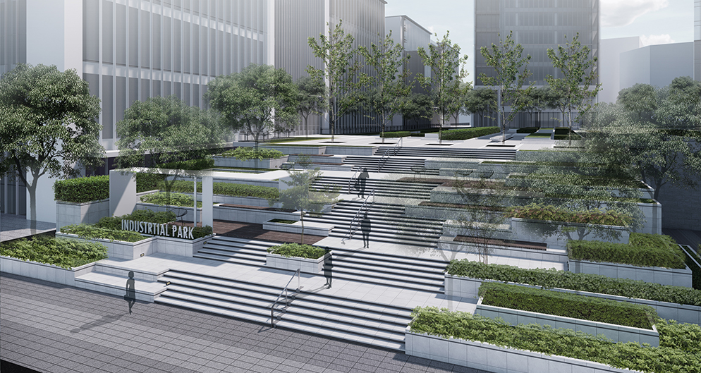 項目基地位于山東濟南市長嶺山,周邊用地業態豐富,成熟,項目景觀主要面向辦公商務人群、科研群體和公寓居民,同時也為周邊居民,消費群體、醫護病患提供一個戶外休憩空間。景觀上我們希望將這個產業園區,塑造為生態綠林、城市客廳、街景系統多維度融合的花園式空間,使室外活動及交流可以流暢而自由的進行。