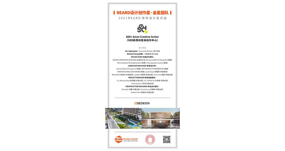 SED新西林香港亞洲創作中心榮獲REARD設計創作星·金星團隊。