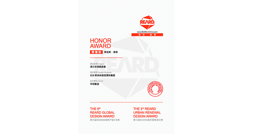 湛江華潤桃源里榮獲居住類景觀榮譽獎;