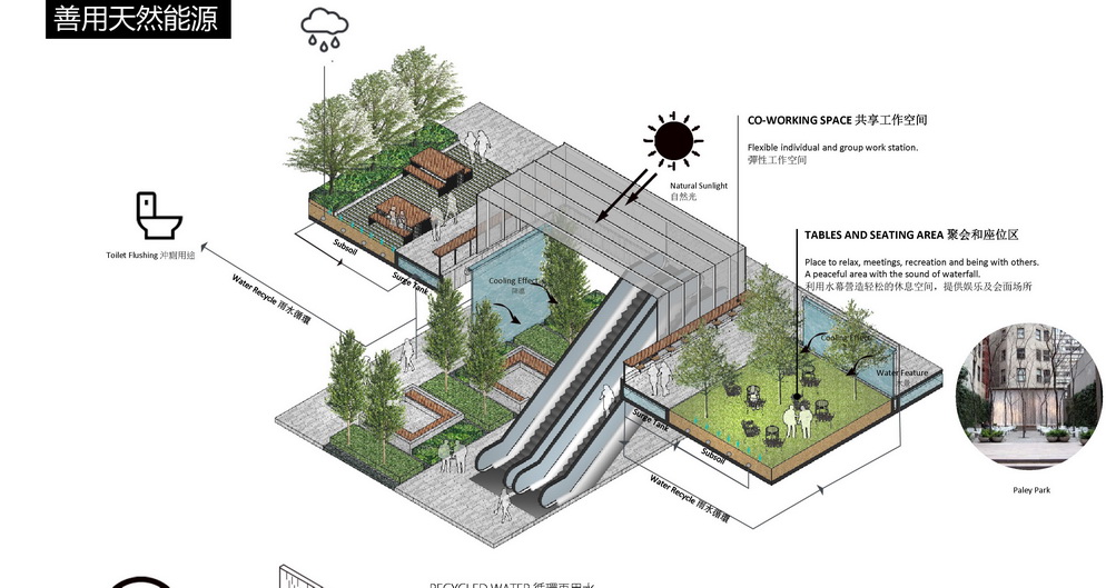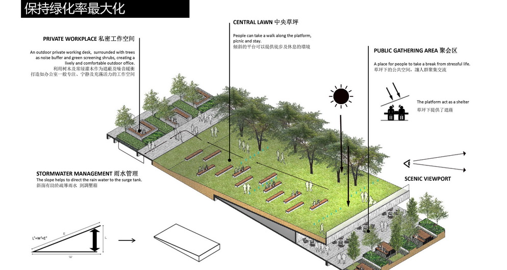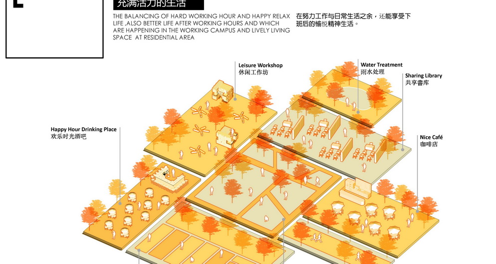 “易拼公社“的理念是讓我們在工作,生活,環(huán)境及生態(tài)之間最大化的獲得平衡。通過利用建筑周邊空間功能與體驗的微妙變化,對功能空間的比率進行重新定義和再次組合, 從而創(chuàng)新出健康,平衡,活躍及立體的生活氛圍。 平衡生活一直是現(xiàn)代社會探討的主題,為了我們向往的生活 ,我們一直在尋求適合的答案。“易拼公社”的理念基于健康生活的啟發(fā),結(jié)合身心與社交健康的融合,展現(xiàn)未來城市創(chuàng)新生態(tài)及科技的生活模式,讓所有人能更好的生活,工作,娛樂。